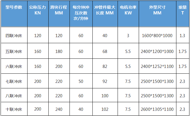 2.沖床參數(shù)表:
